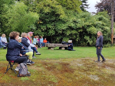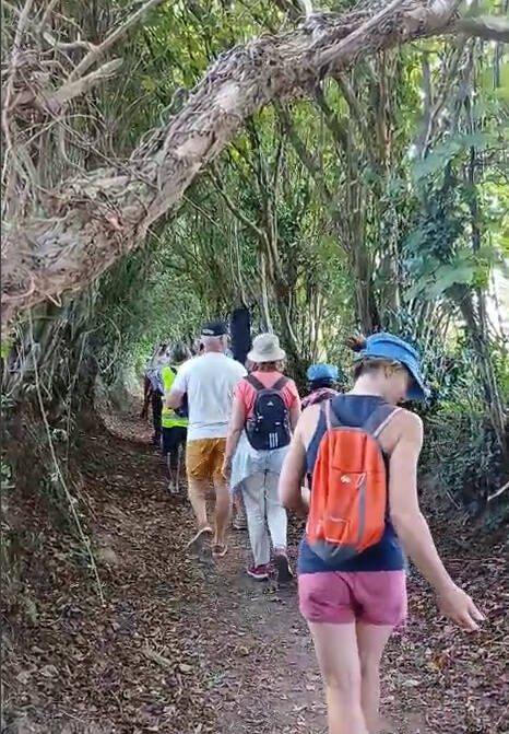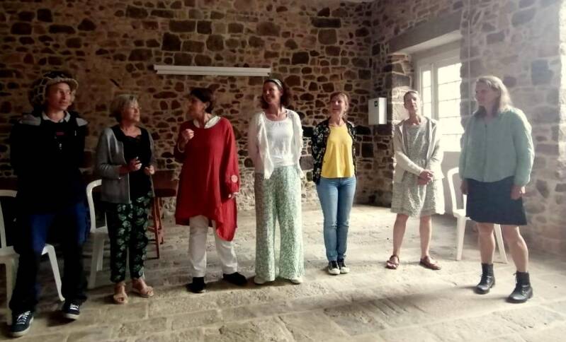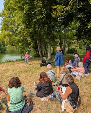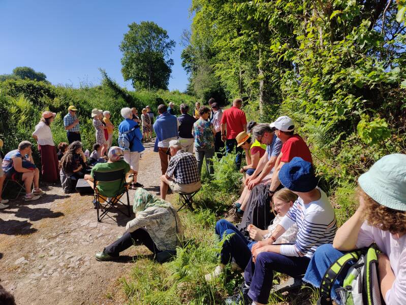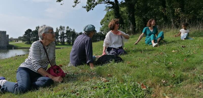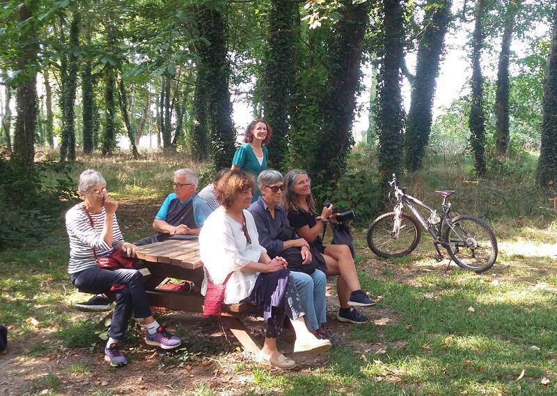 Toutes ces traversées ont été contées sur les chemins autour de l'étang, avec un crochet au pied de la Tour Jean-Jacques, dont Marie Paule nous a livré les secrets.