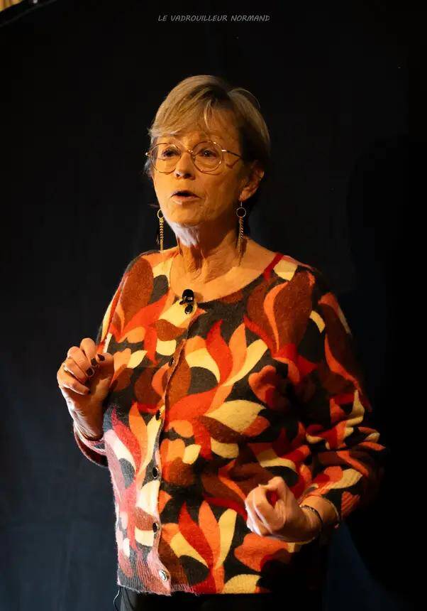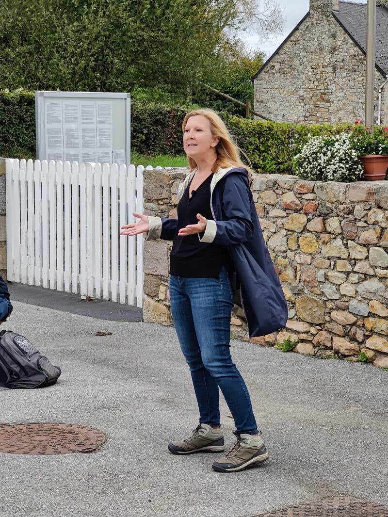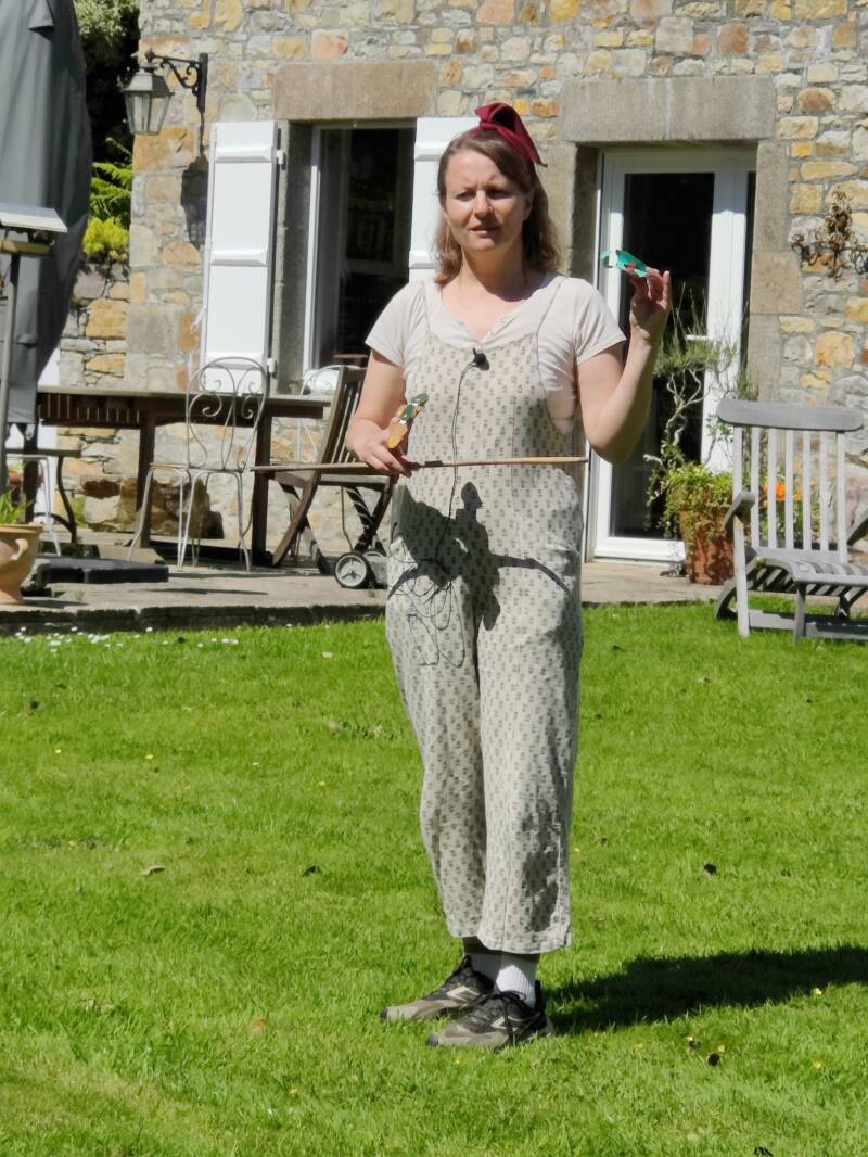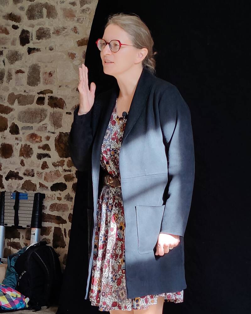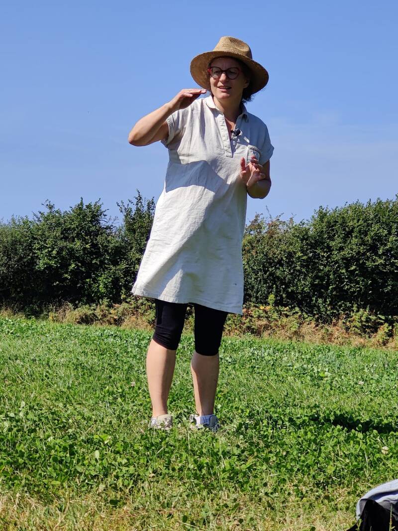 Flamanville, 20 septembre, contée à l’abri des gouttes, dans la charretterie du château de Flamanville. Le thème étant “’les îles”, quelle meilleure illustration que d’inviter Bridget Blue une habitante d’Aurigny, conteuse en français, en anglais et en langue des signes.