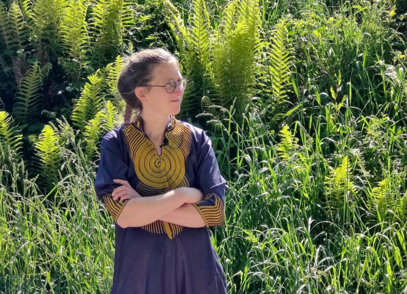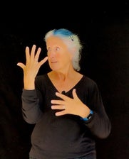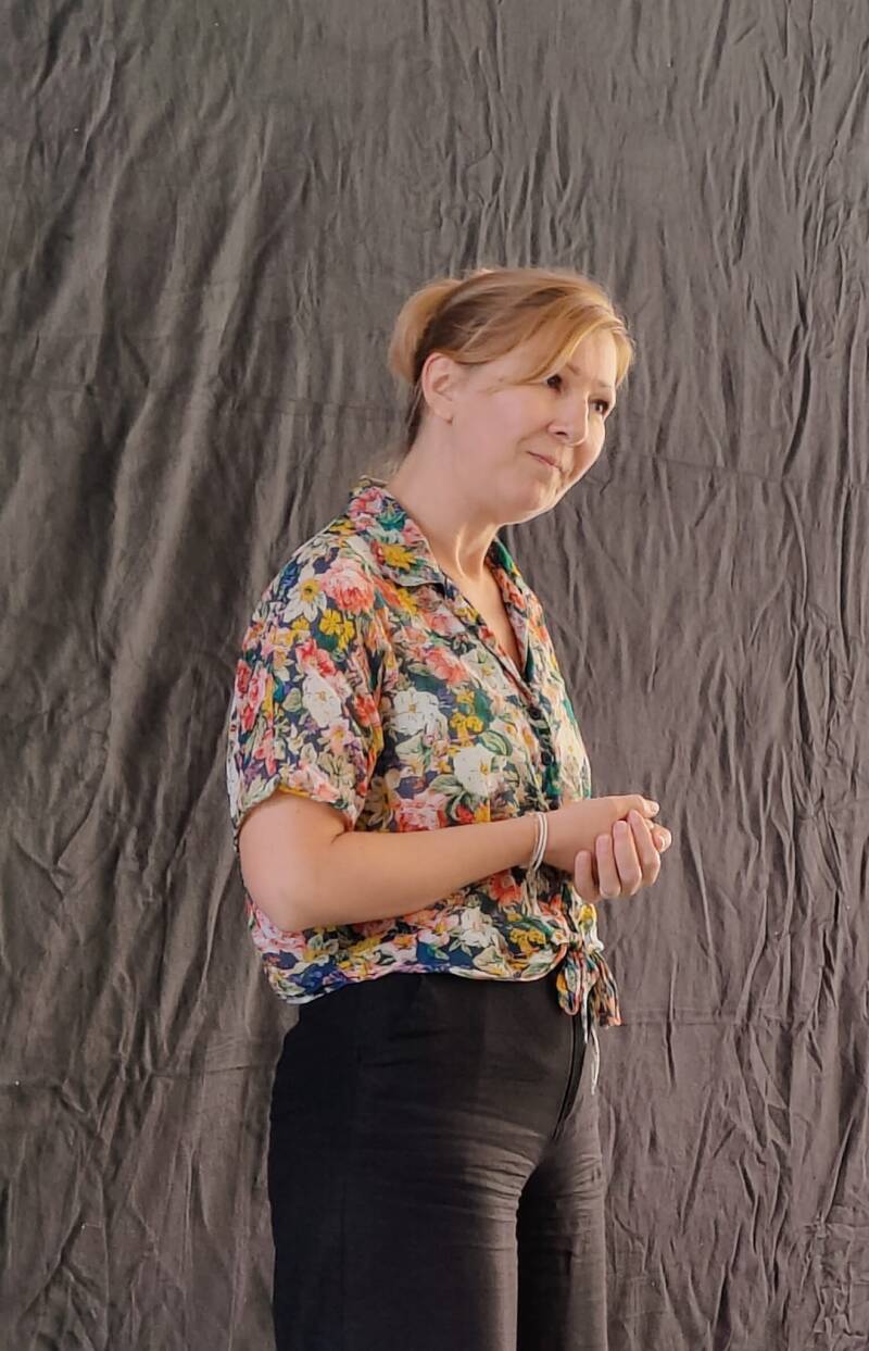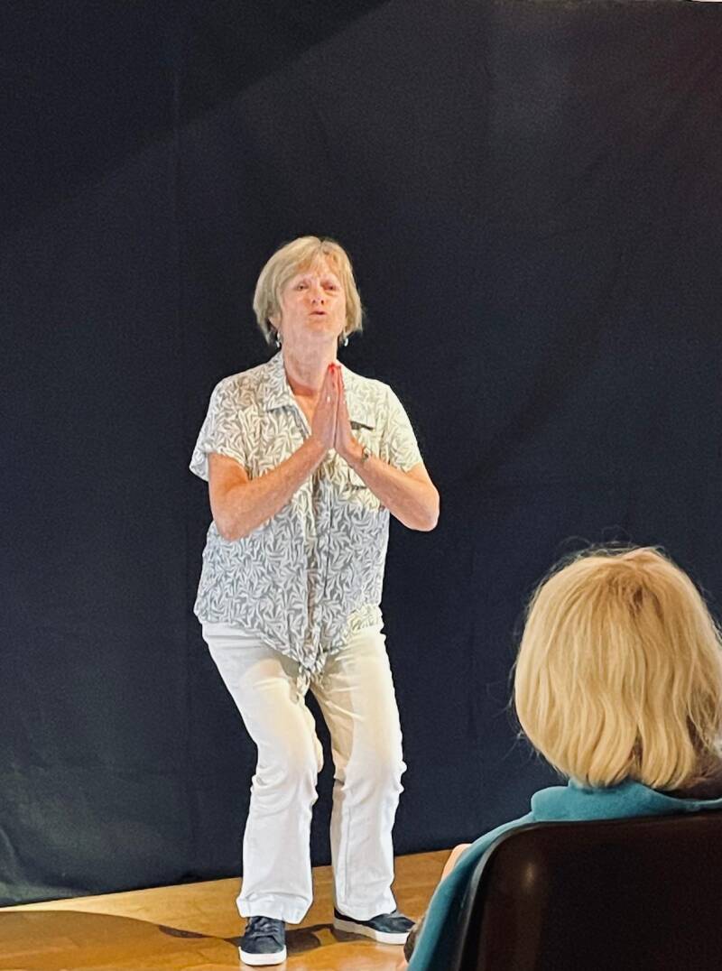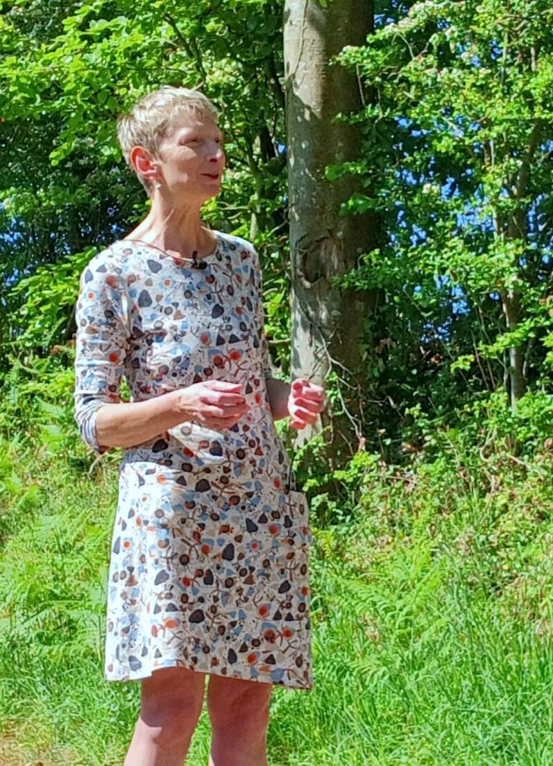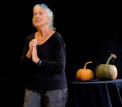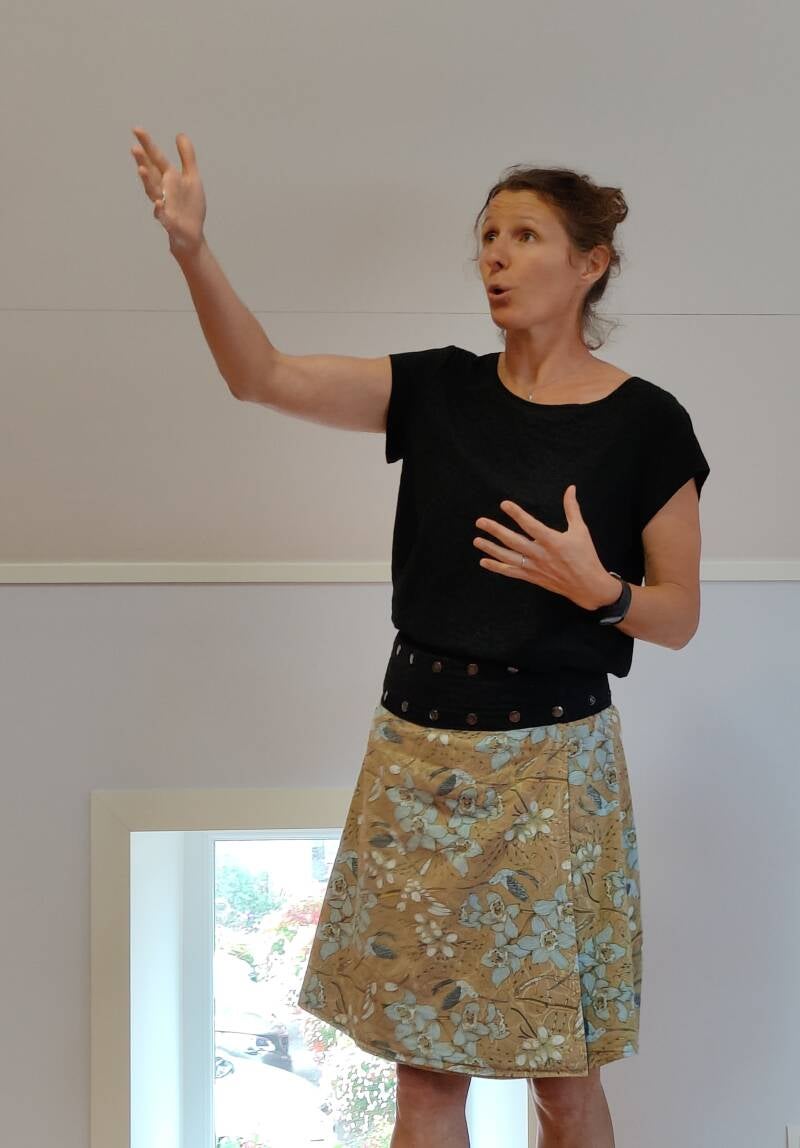 Flamanville, 20 septembre, contée à l’abri des gouttes, dans la charretterie du château de Flamanville. Le thème étant “’les îles”, quelle meilleure illustration que d’inviter Bridget Blue une habitante d’Aurigny, conteuse en français, en anglais et en langue des signes.