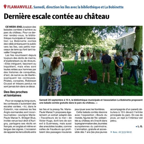 Au bout de notre Presqu'île pire qu'une île, la com' la plus efficace est le bouche à oreille et la presse locale. Retrouvez ici les articles et les mentions sur les réseaux sociaux concernant La Bobinette contes deci delà. Découvrez ce que les médias et nos partenaires disent de notre collectif de conteuses du nord Cotentin.